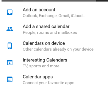 Simply go to calendar, hit the “hamburger menu” in top left then press + – the menu below will appear.